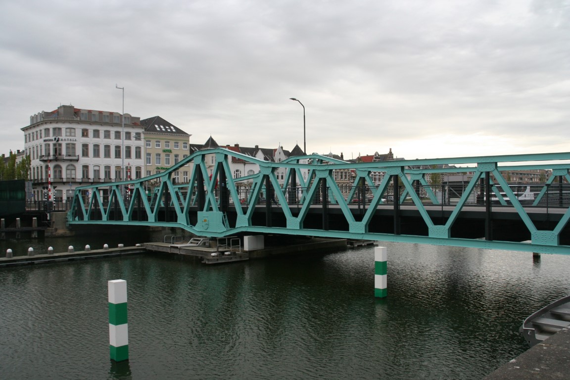 In 1853 gebouwde ijzeren klapbrug. Verbinding tussen Rouaanse kaai en de Kinderdijk.