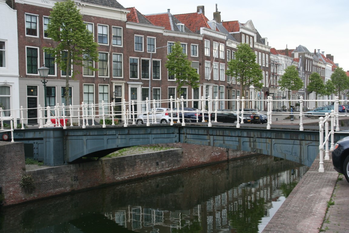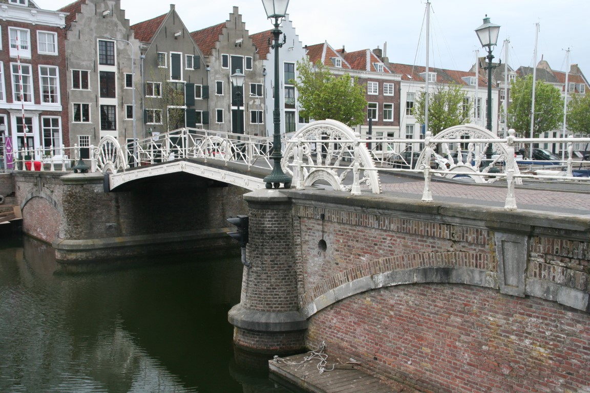 Dubbele ijzeren draaibrug in 1855 als vervanging geplaatst en van nieuwe landhoofden voorzien, op een middeleeuwse bruglocatie over de stadsgracht.