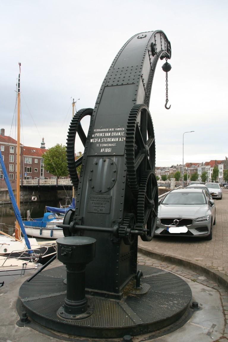 de gebogen vorm konden zwaardere lasten hoger getild worden, waarbij tevens het gebruik van smeedijzer een grotere belasting mogelijk maakte dan voorheen bij gietijzer. Voor Nederland uniek type los- en laadkraan.