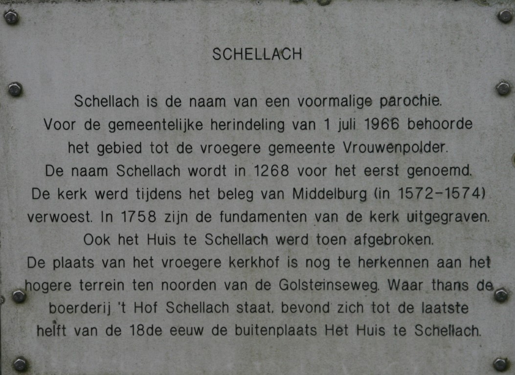 De vliedberg Schellach is 3 meter hoog, heeft een doorsnede van +30 meter en is niet omgeven door een sloot of gracht. De vliedberg bevind zich op een terrein dat bekendstaat als de ‘Fruitberg’, met sporen van een mogelijke motte of vliedberg. De heuvel moet tussen 1690 en 1738 zijn afgegraven.