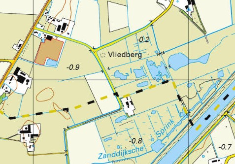 We wandelen via de Domburgse watergang verder richting de Langevielevest