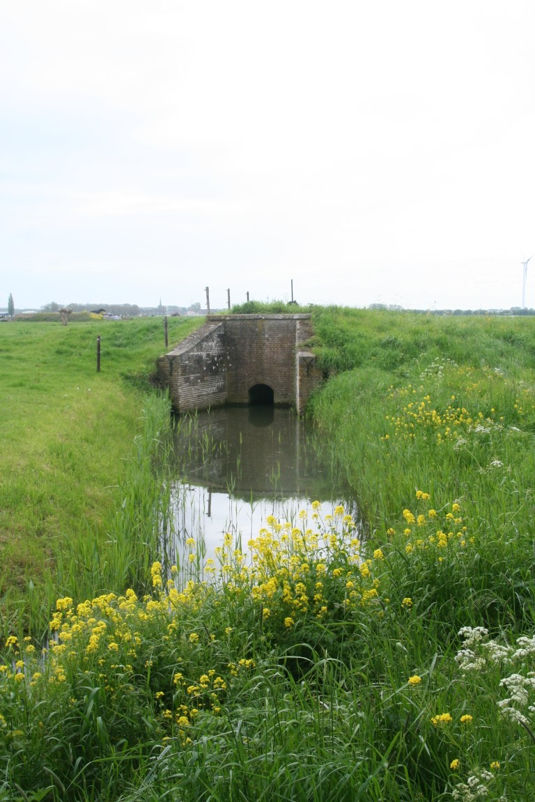 Een van de historische waterwerken in de Elshoutse Zeedijk. In de dijk zijn in de loop der jaren zowel waterstaatkundige, als militaire “kunstwerken “aangebracht. De eerste, ter bescherming tegen de zee. De tweede hebben een relatie met de zuidelijke waterlinie en de verdedigingswerken rond de vesting Heusden.