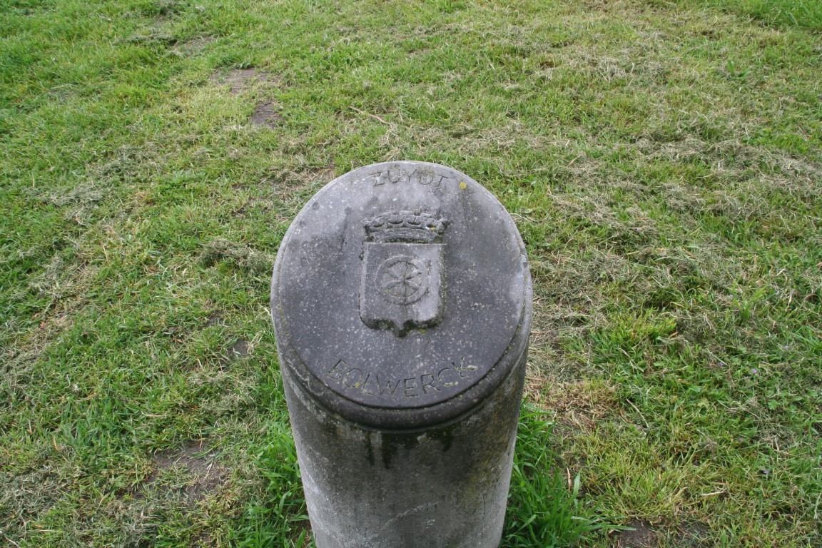 Grenspaal op de zeedijk geeft de grens aan tussen Brabant en Holland in 1795