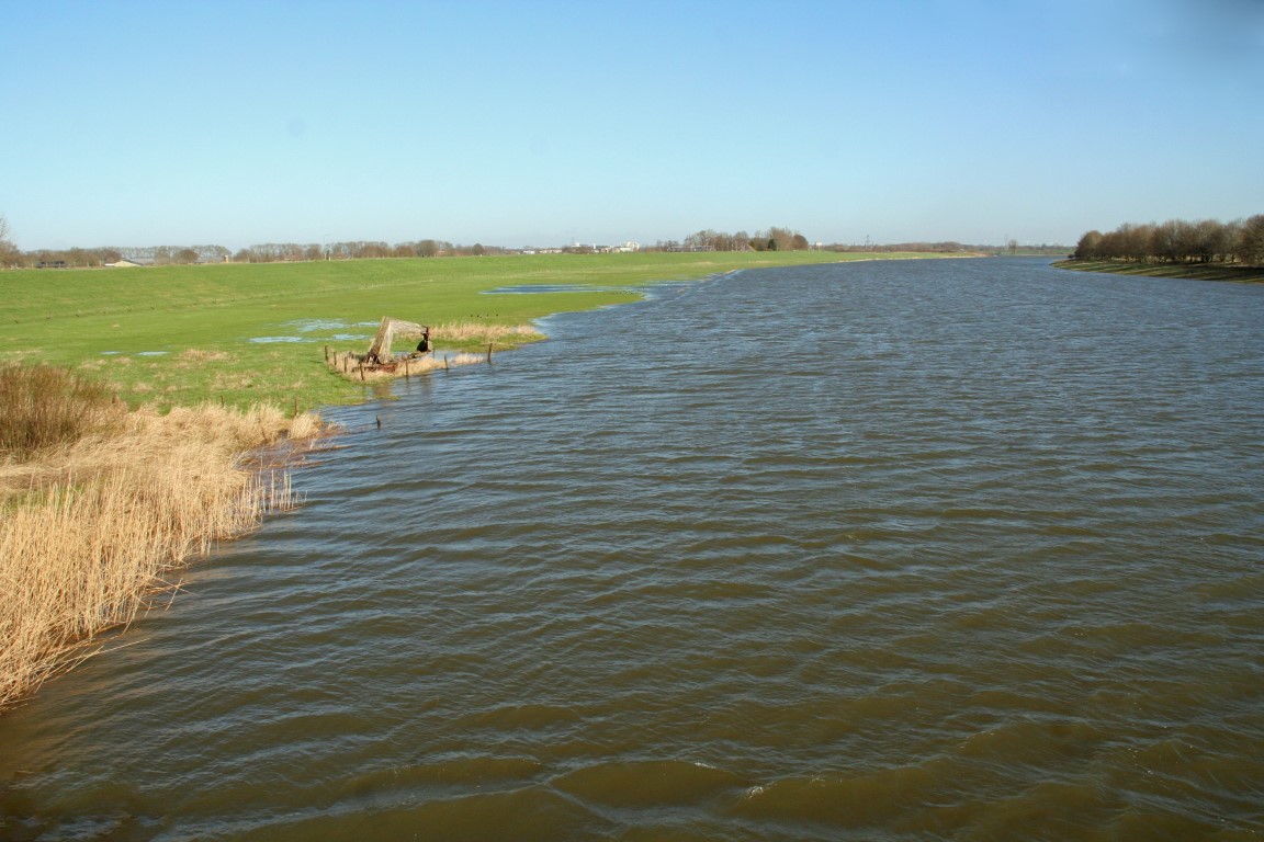 raam dat uitkijkt over de Oude Maasdijk en de uiterwaarden en zie dat er grote boten op