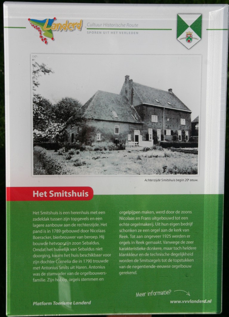 Groot herenhuis, oorspronkelijk van de Reekse orgelmaker Smits, voor wie het in 1789 gebouwd is.