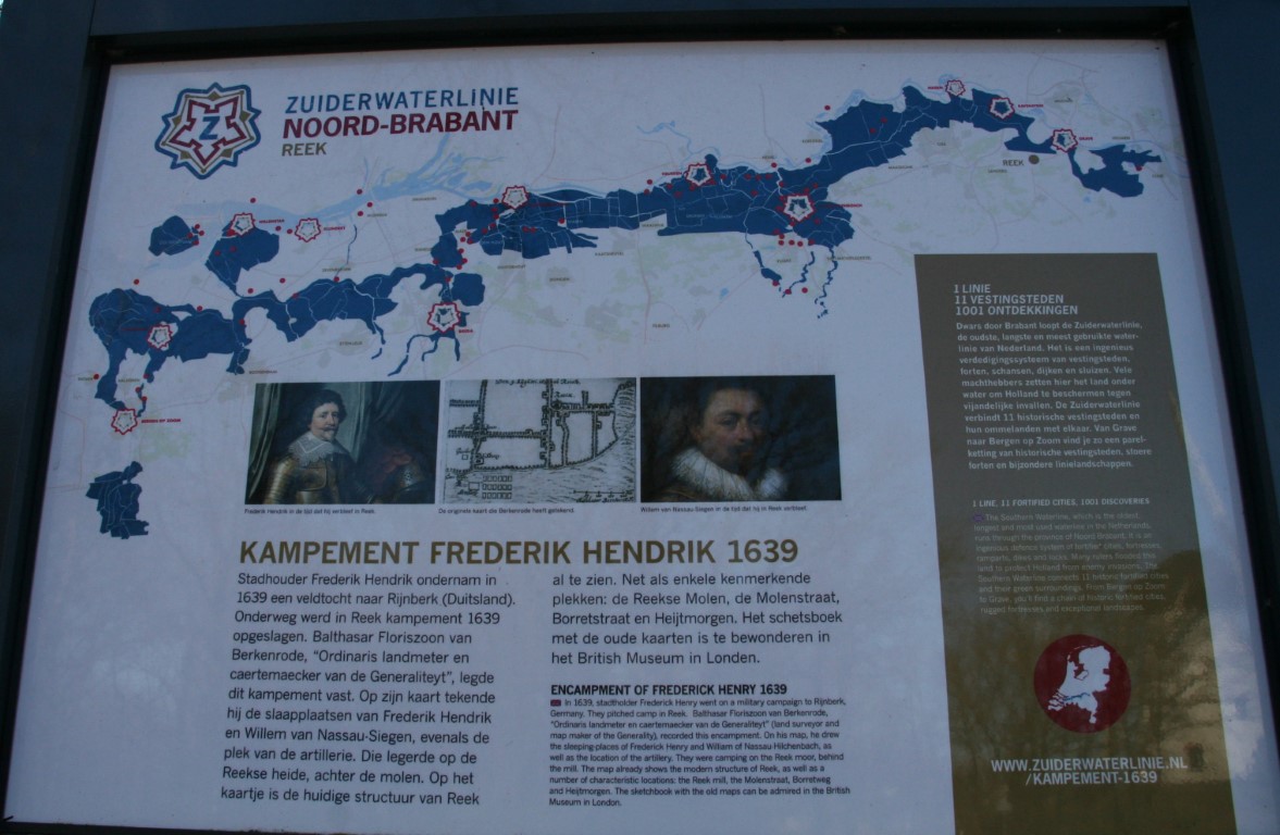 Buiten de bebouwde kom van Reek komen we op de Reekse heide bij de plaats waar het oude kampement van Frederik Hendrik was.