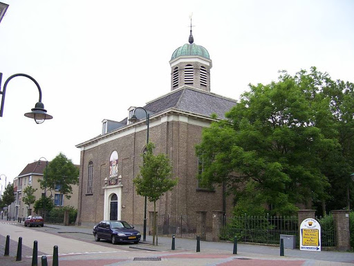 N.H. Kerk. bouwwerk uit 1693 . Boven de ingang met natuurstenen omlijsting een nis, waarin een natuurstenen cartouche met opschrift: 1693, en het wapen van de koning-stadhouder Willem III die heer was van Dinteloord.